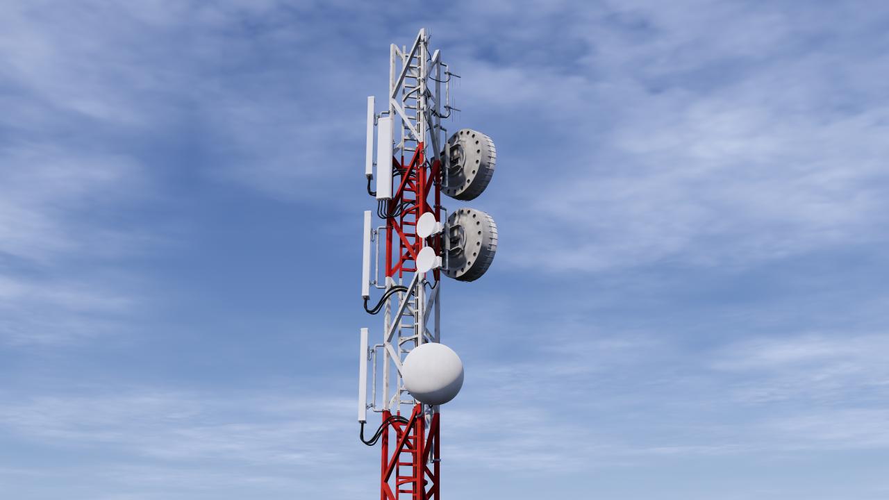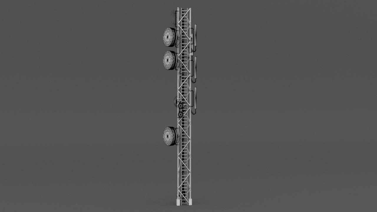 High detailed Antenna Tower V2. Included: 20 Materials 11 Textures - The scenes are NOT included. The model is delivered with all its parts in a static position.