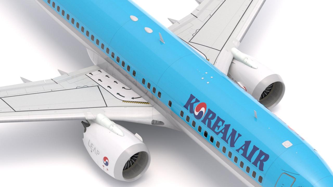 High detailed Boeing 737-800 MAX Korean Air. Included: 69 Materials 28 Textures - The scenes are NOT included. The model is delivered with all its parts in a static position and the landing gear down. Thank you for buying ALPHA3D models