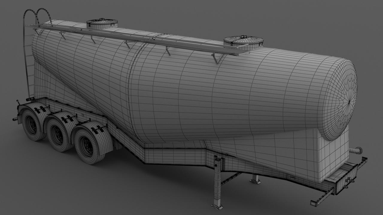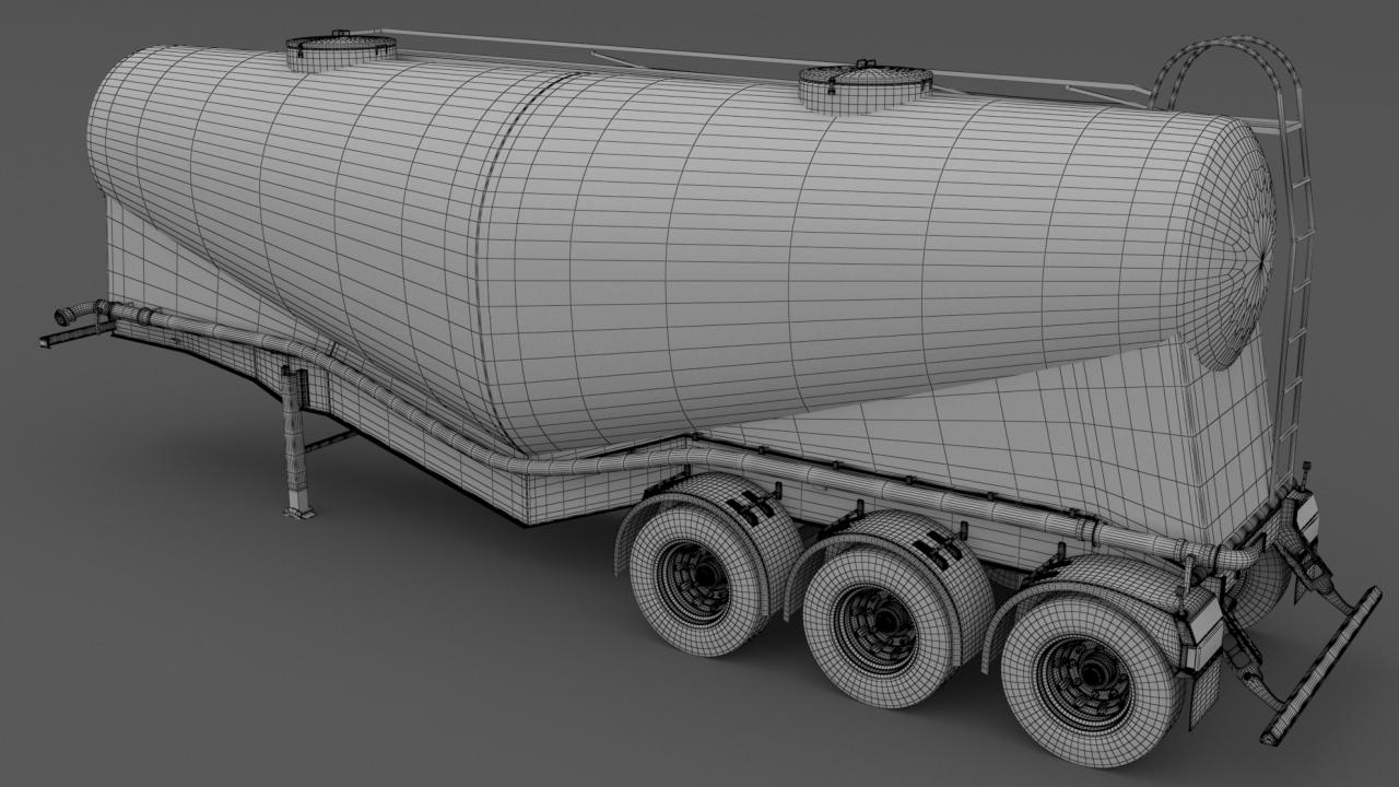 High detailed Cement Trailer. Included: 18 Materials 5 Textures - The scenes are NOT included. The model is delivered with all its parts in a static position.