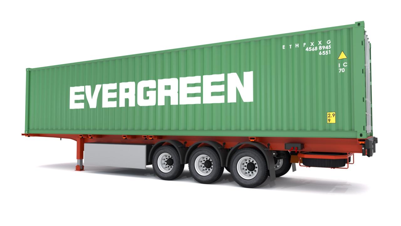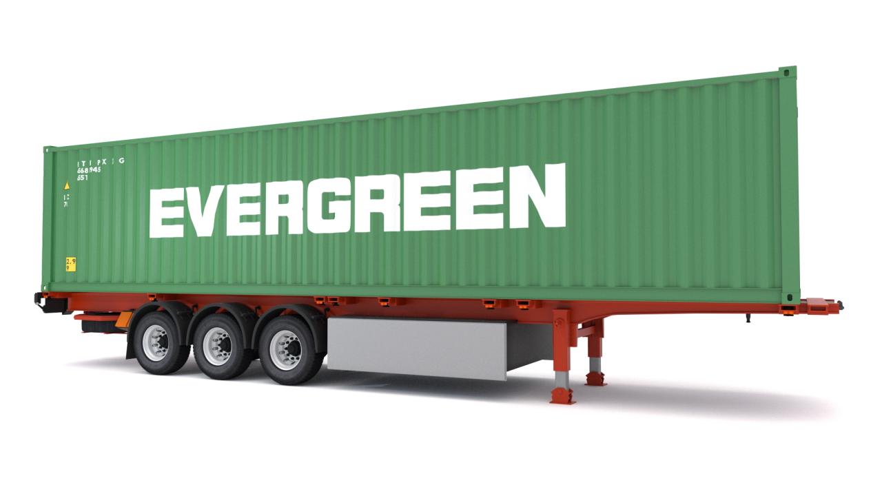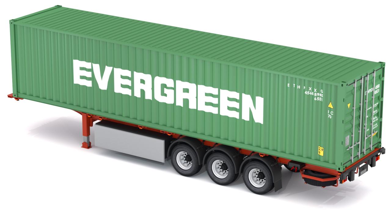 High detailed Chassis Semi Trailer with Evergreen Shipping Container. Included: 24 Materials 5 Textures - The scenes are NOT included. The model is delivered with all its parts in a static position.