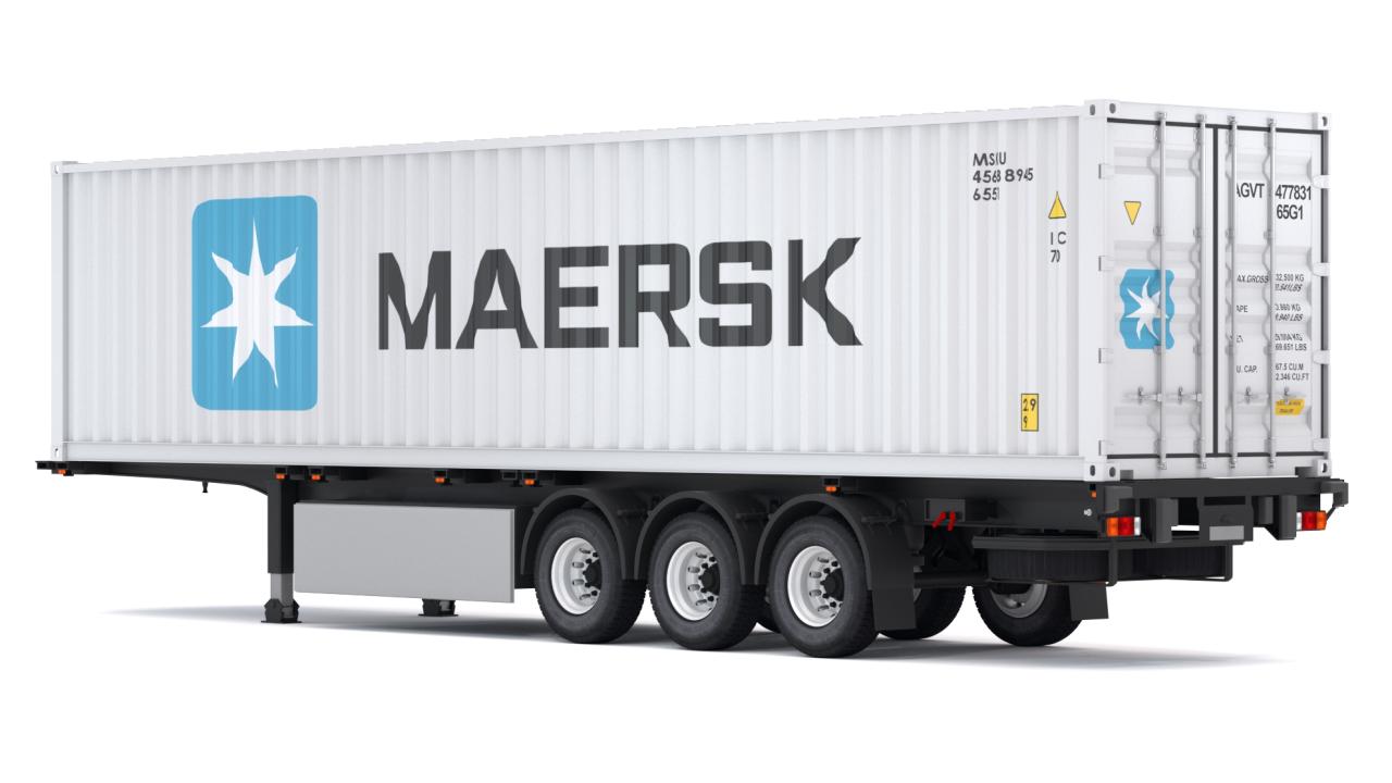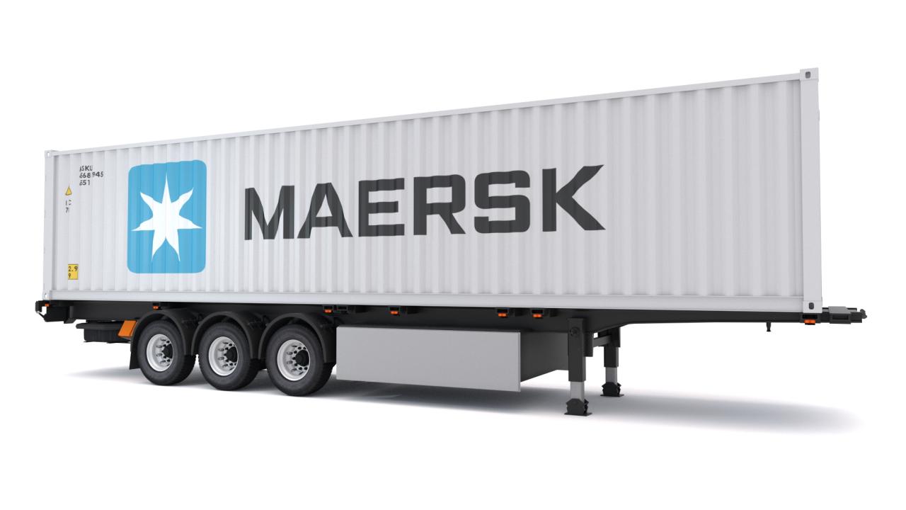 High detailed Chassis Semi Trailer with Maersk Shipping Container. Included: 24 Materials 5 Textures - The scenes are NOT included. The model is delivered with all its parts in a static position.