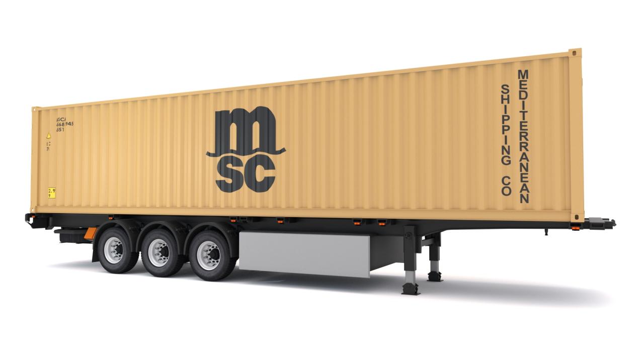 High detailed Chassis Semi Trailer with MSC Shipping Container. Included: 24 Materials 5 Textures - The scenes are NOT included. The model is delivered with all its parts in a static position.