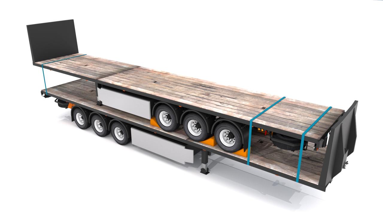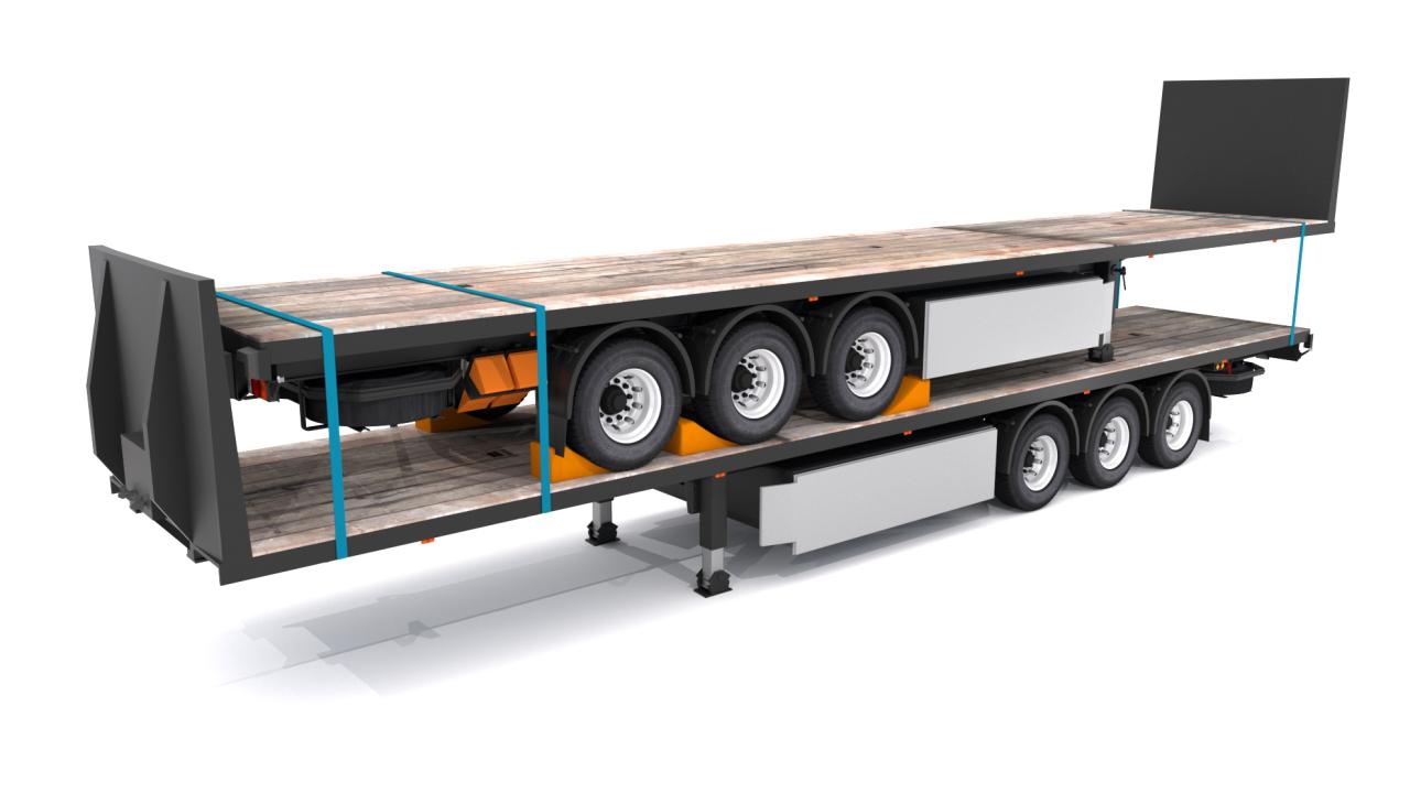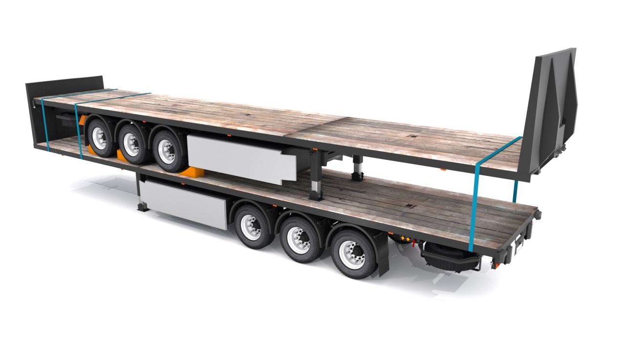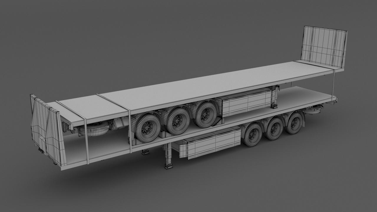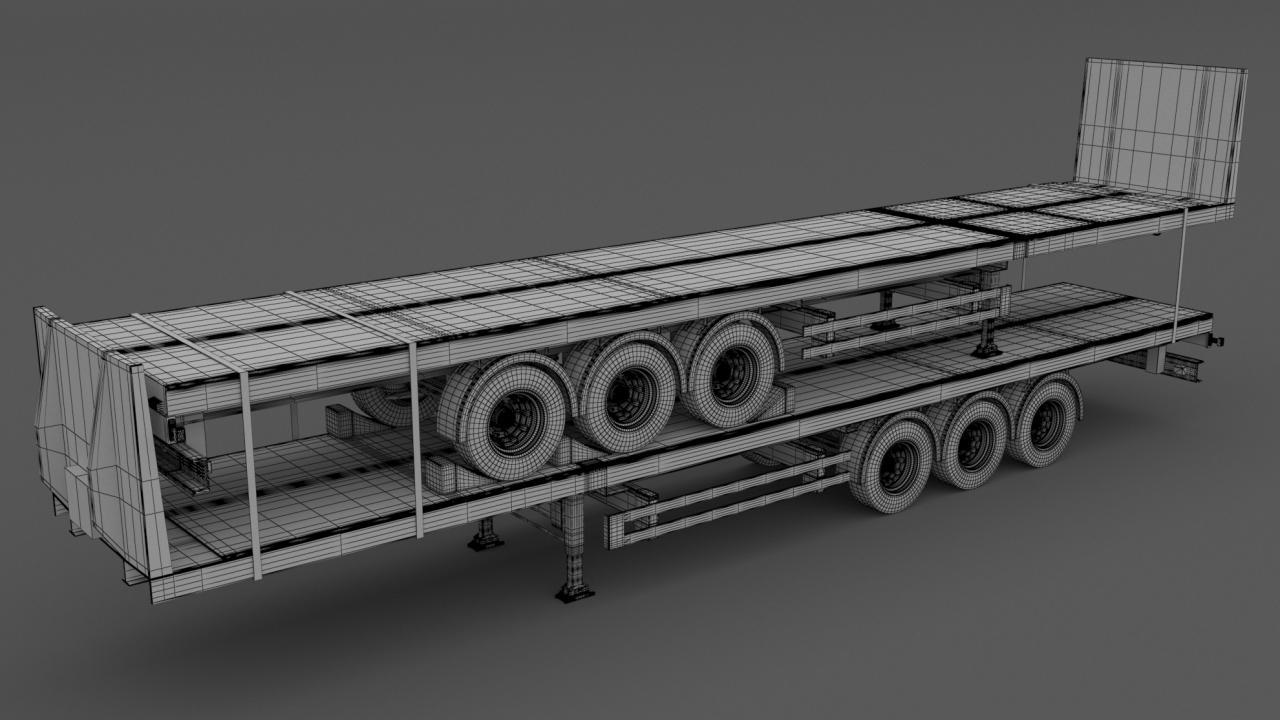 High detailed Flatbed Trailer with Trailer. Included: 19 Materials 2 Textures - The scenes are NOT included. The model is delivered with all its parts in a static position.