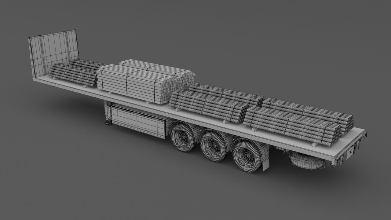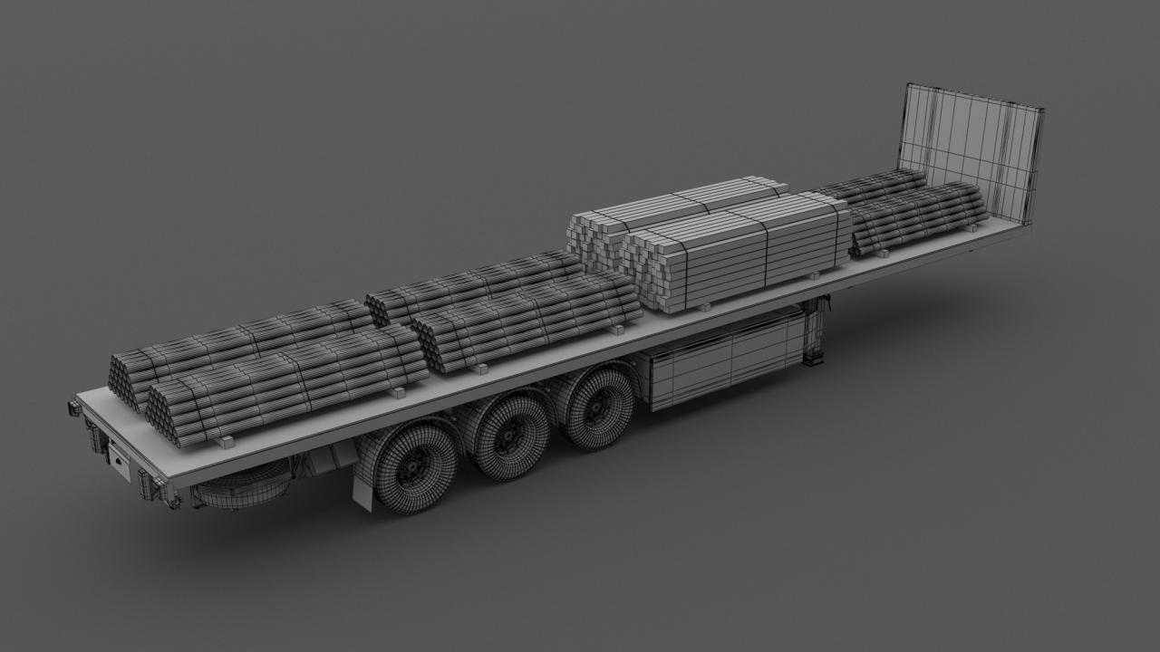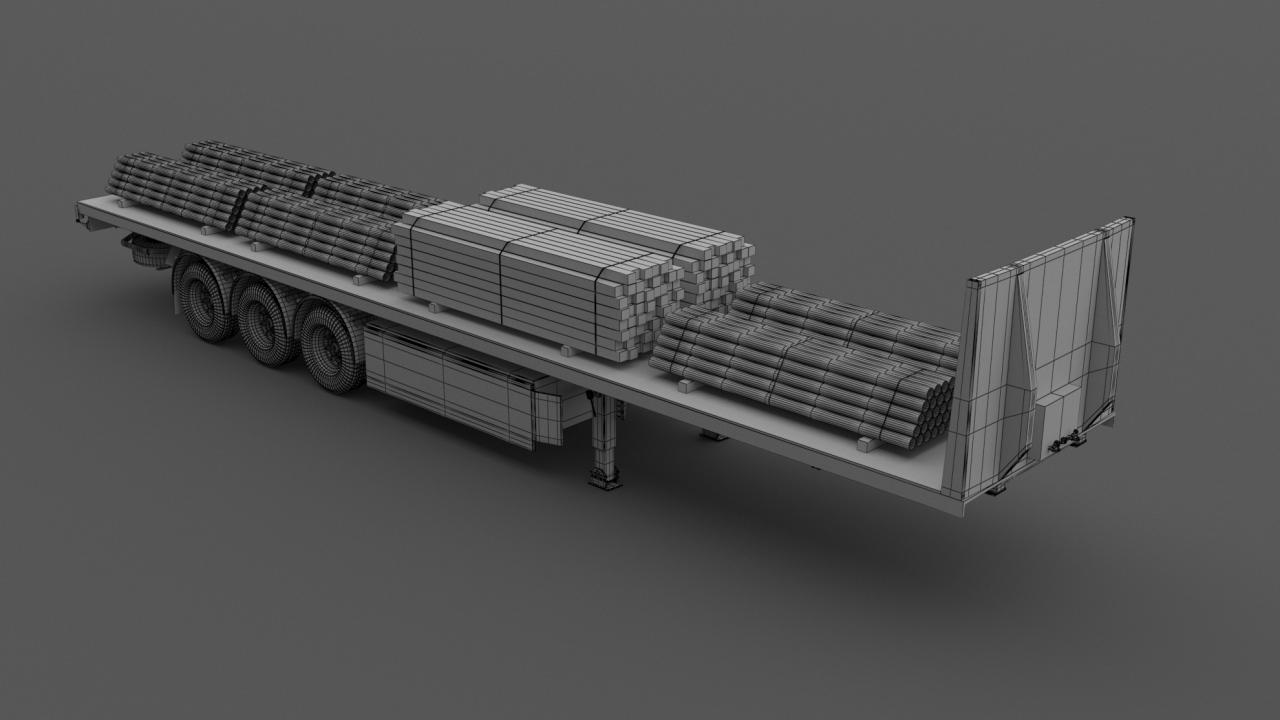 High detailed Industrial Trailer 02. Included: 22 Materials 8 Textures - The scenes are NOT included. The model is delivered with all its parts in a static position.