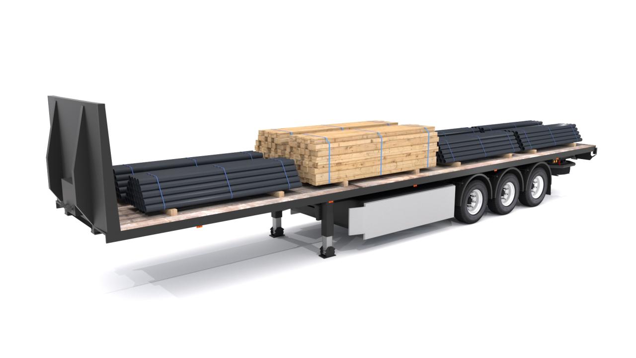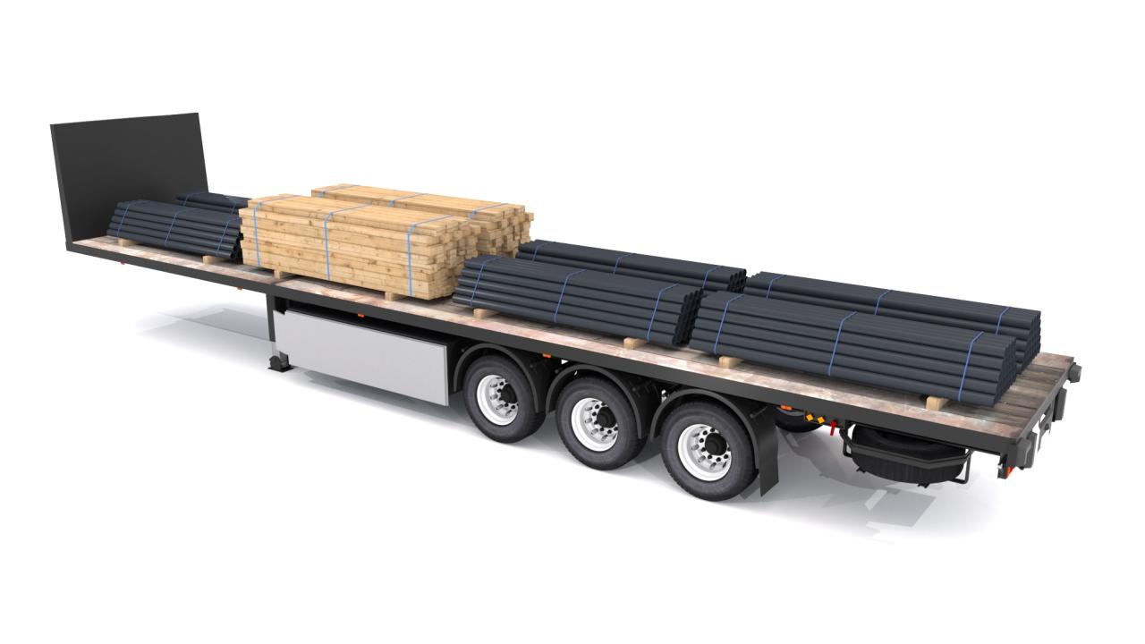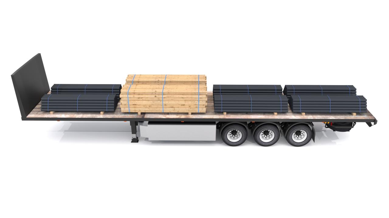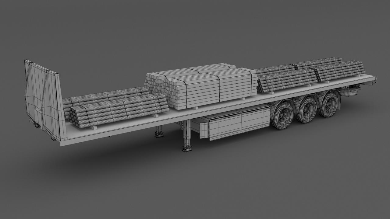 High detailed Industrial Trailer 02. Included: 22 Materials 8 Textures - The scenes are NOT included. The model is delivered with all its parts in a static position.