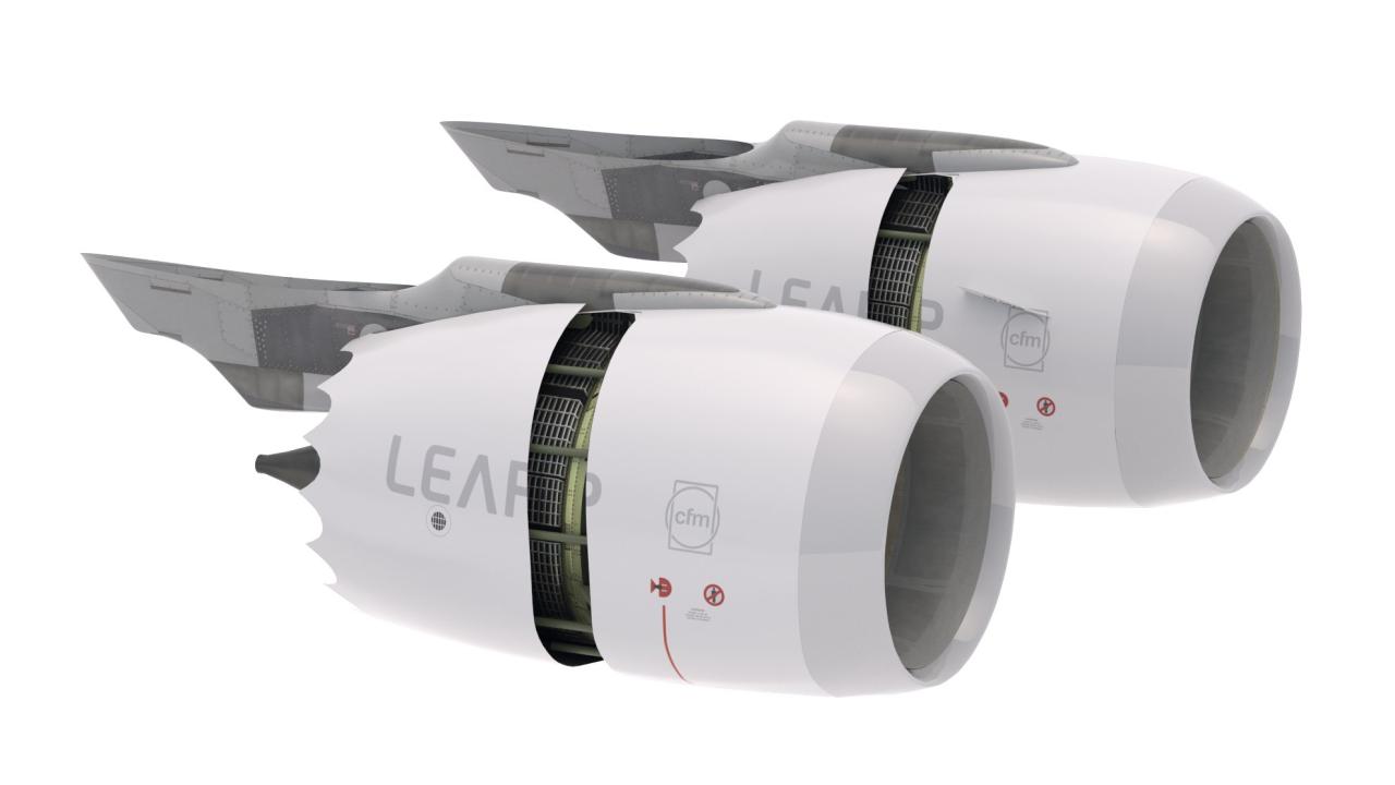High detailed Jet Engine CFM LEAP. Included: 16 Materials 11 Textures - The scenes are NOT included. The model is delivered with all its parts in a static position.
