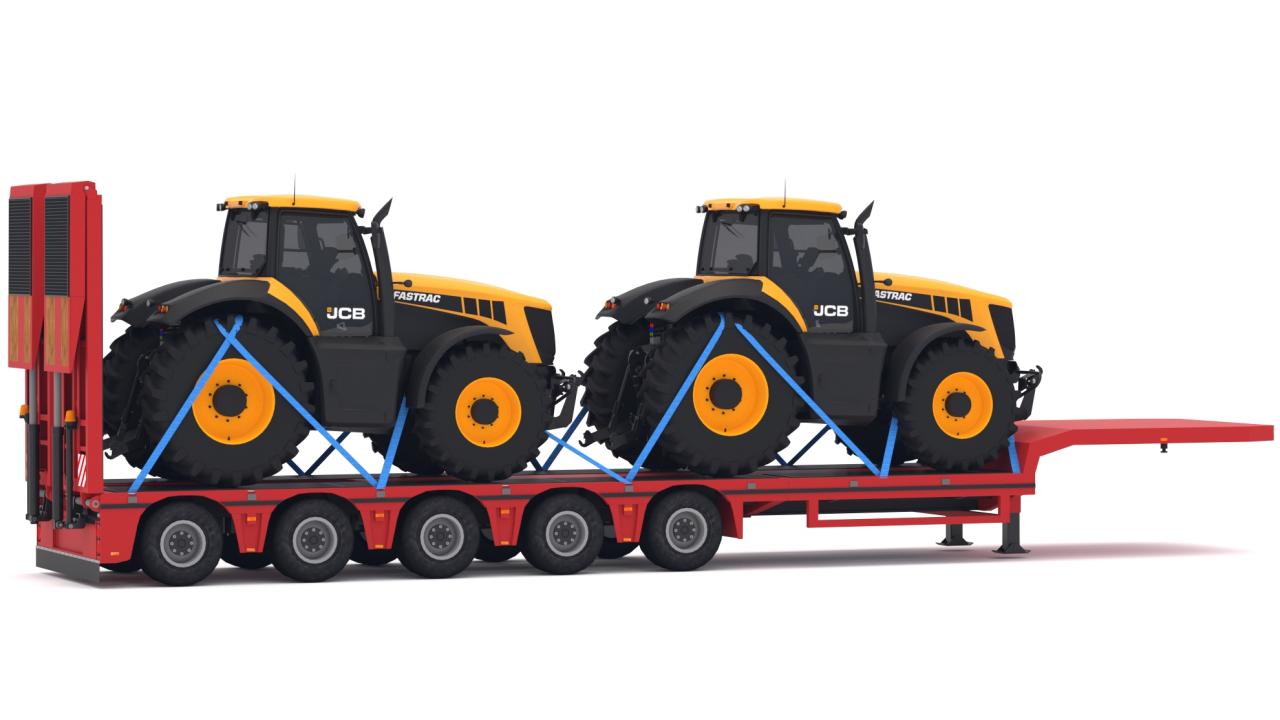 High detailed Lowboy Trailer with JCB Fastrac 8310. Included: 59 Materials 16 Textures - The model is delivered with all its parts in a static position.