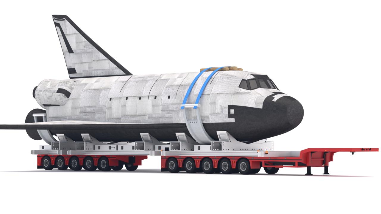 High detailed Lowboy Trailer with Space Shuttle. Included: 8 Materials 2 Textures - The model is delivered with all its parts in a static position.