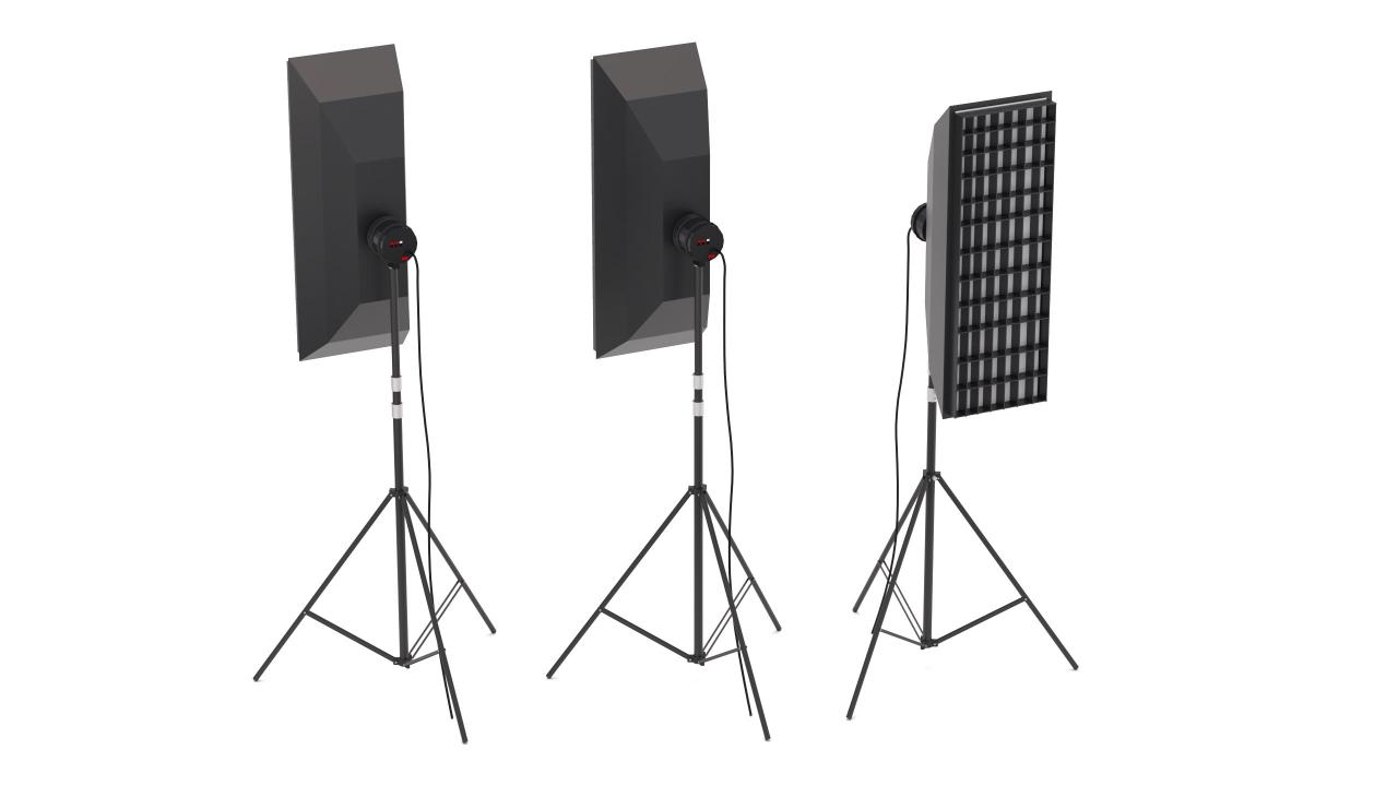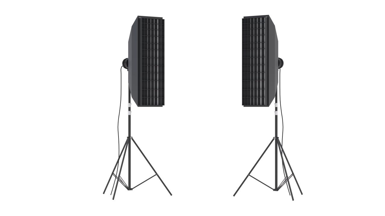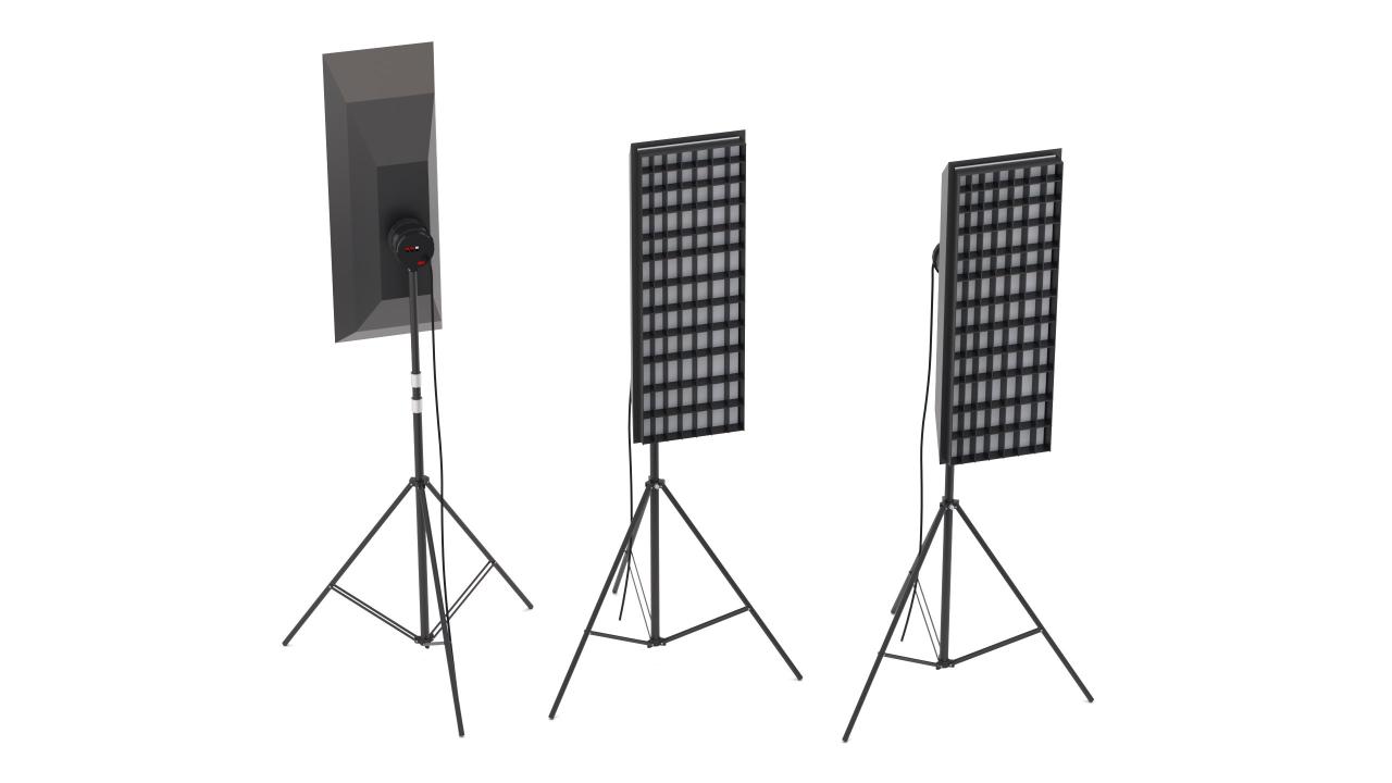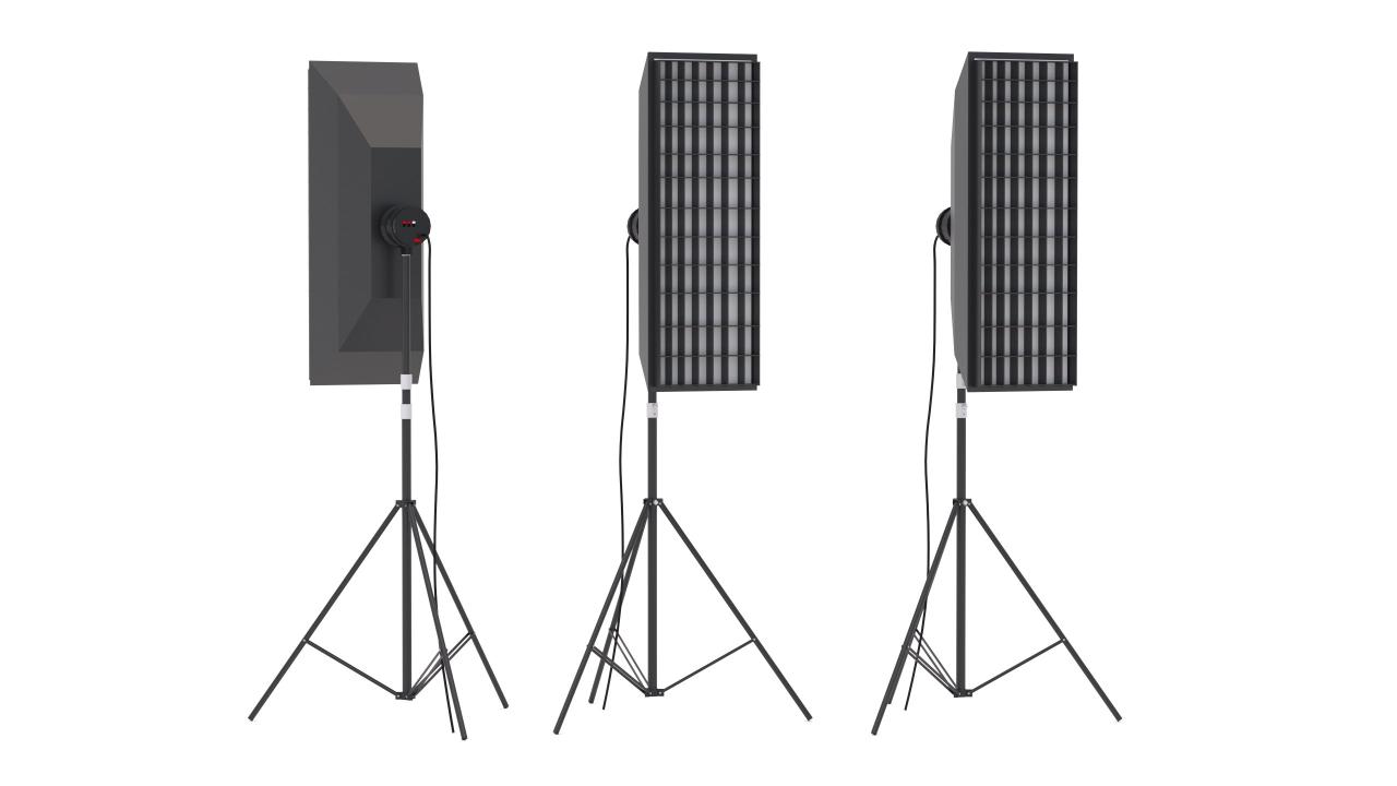 High detailed Softbox Studio Light 02. Included: 9 Materials 0 Textures - The scenes are NOT included. The model is delivered with all its parts in a static position.
