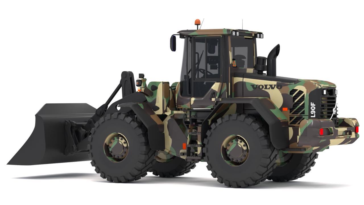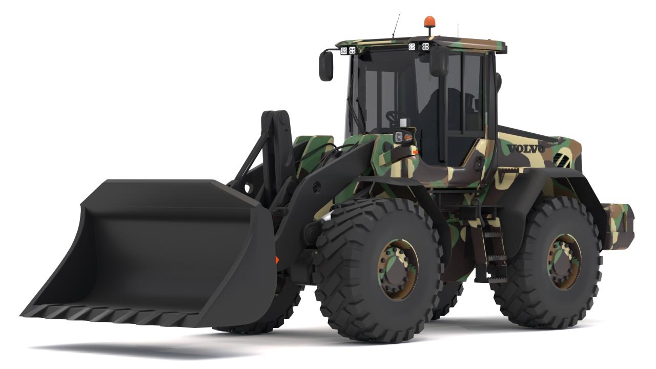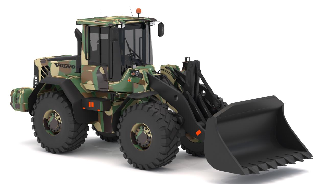 High detailed Volvo l90f Loader Military. Included: 38 Materials 3 Texture - The scenes are NOT included. The model is delivered with all its parts in a static position.