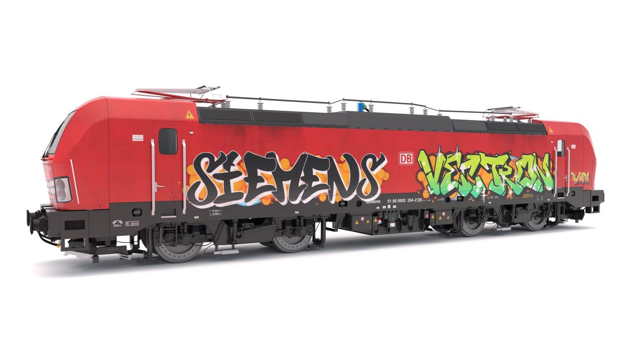 High detailed Siemens Vectron DB with Graffiti. Included: 67 Materials 14 Texture - The scenes are NOT included. The model is delivered with all its parts in a static position.