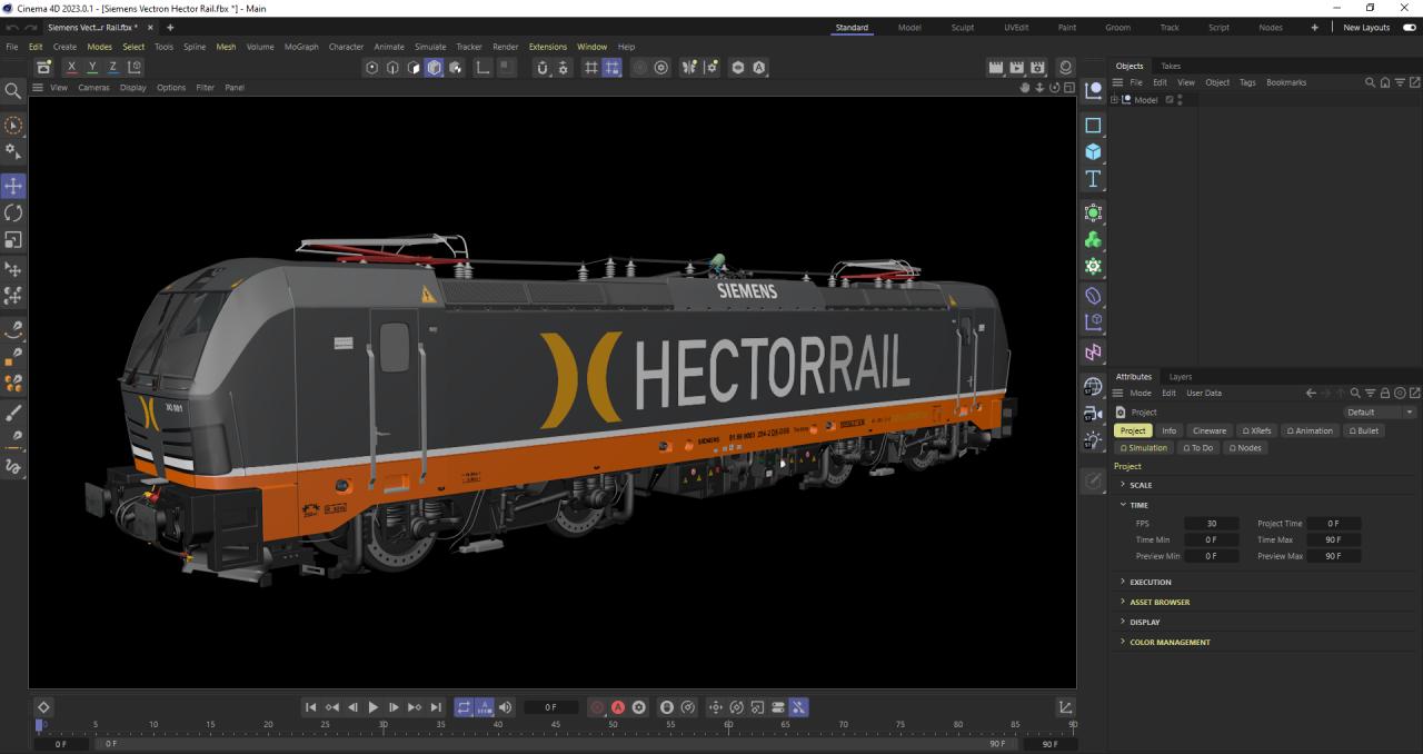 High detailed Siemens Vectron Hector Rail. Included: 67 Materials 14 Texture - The scenes are NOT included. The model is delivered with all its parts in a static position.