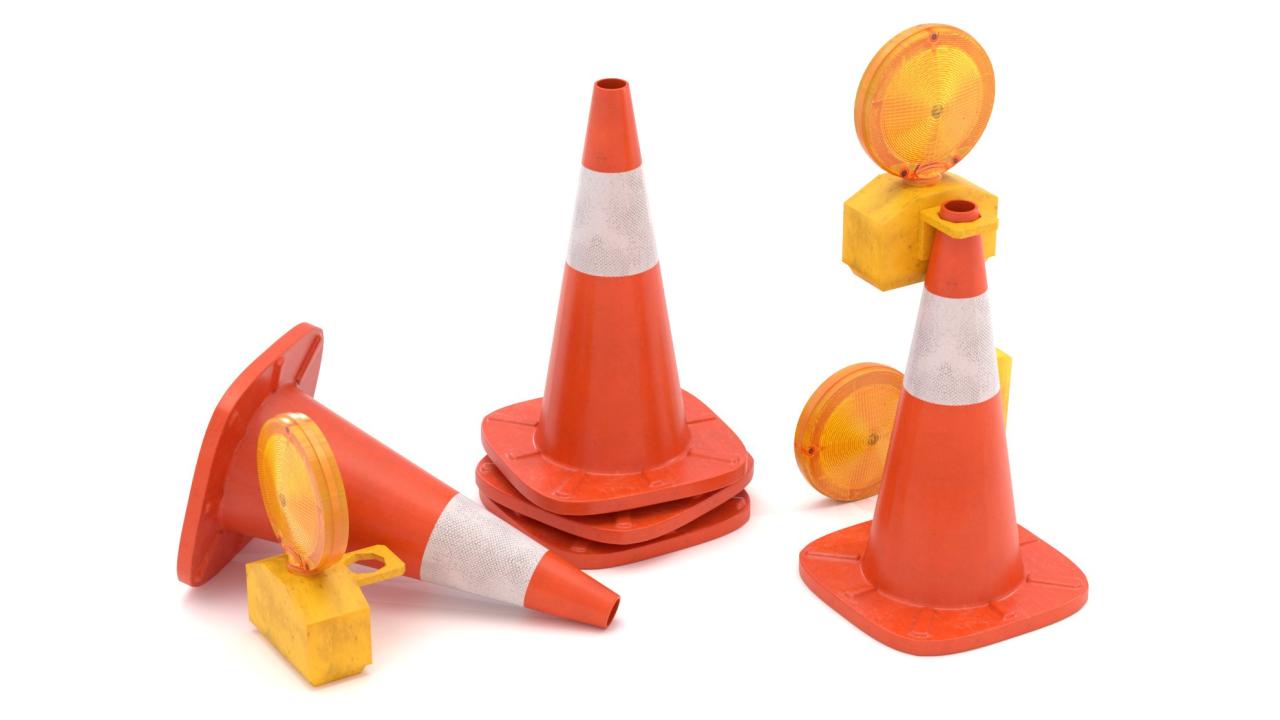 High detailed Traffic Cone with Safety Amber Warning Light. Included: 5 Materials 4 Textures - The scenes are NOT included. The model is delivered with all its parts in a static position.